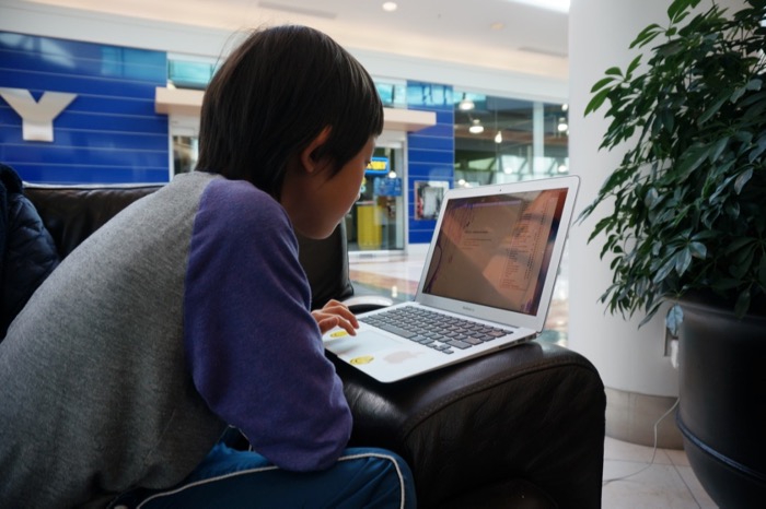 We’re not exactly sure what inspired him to make this video. Maybe it’s because we’ve mentioned how his directed learning community, SelfDesign, will be providing him with a new iPad in January and he’d rather have a laptop. The one he’s using is my old MacBook Air, but the screen is in poor condition and the battery only lasts about an hour.