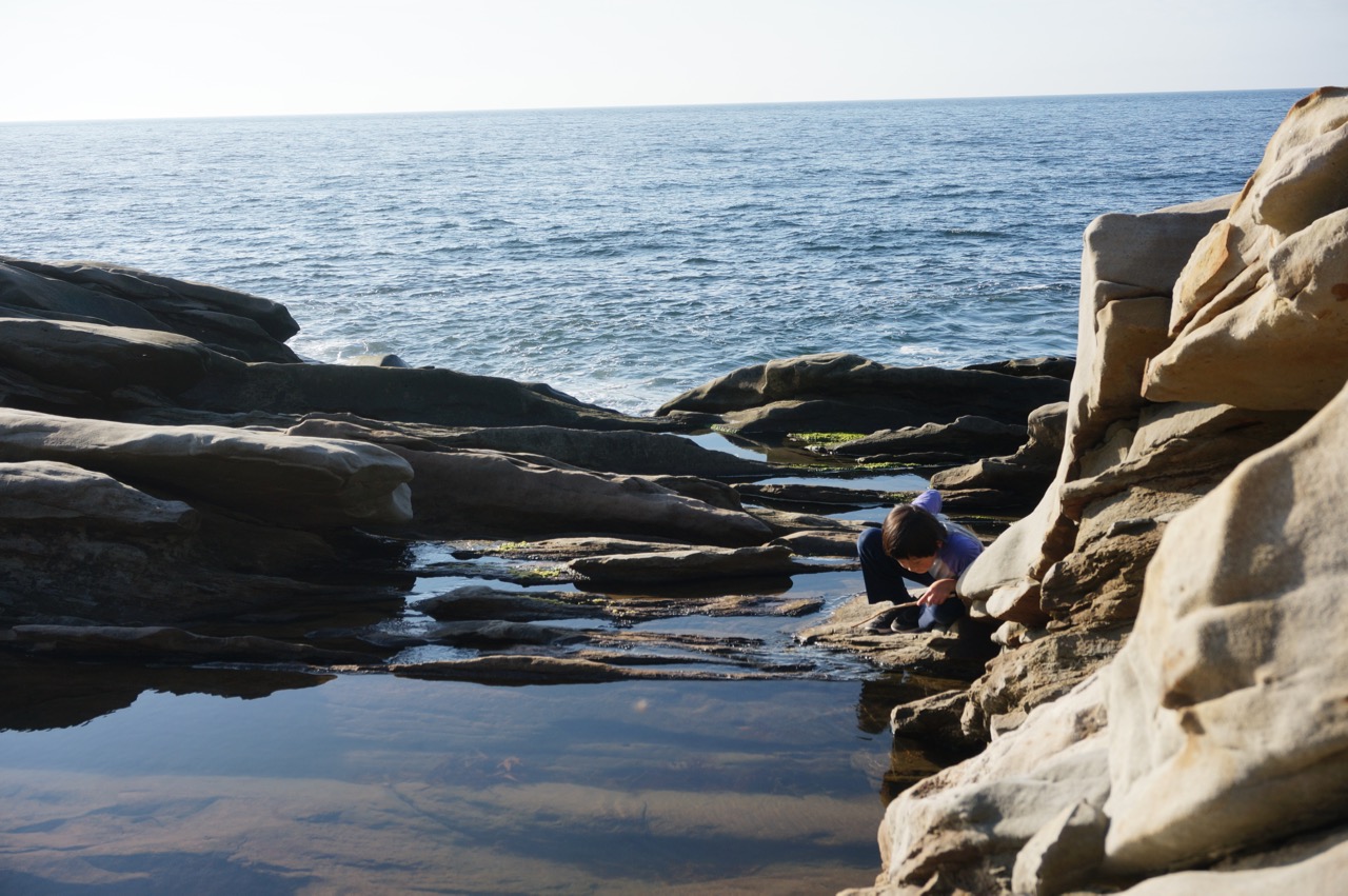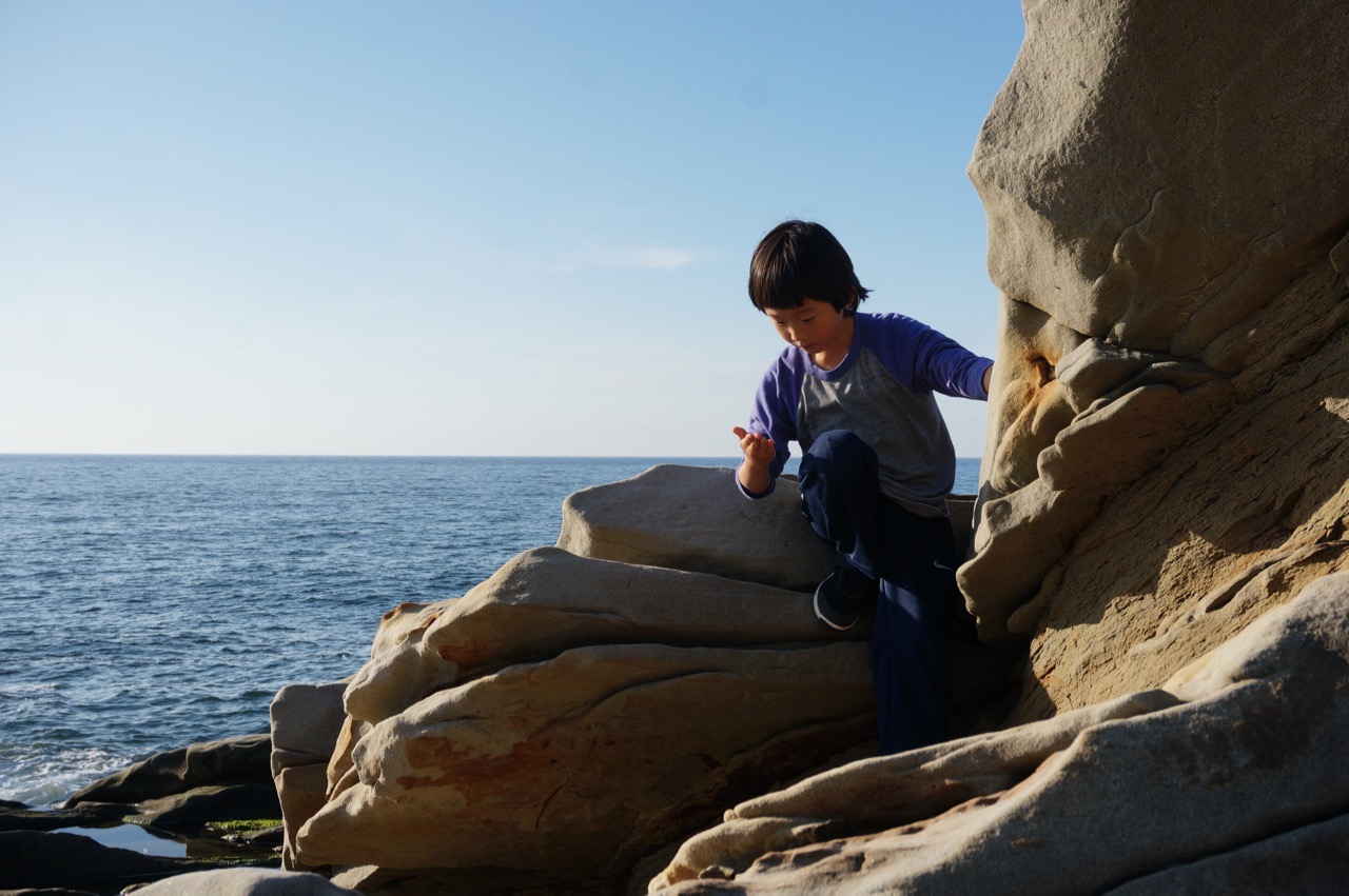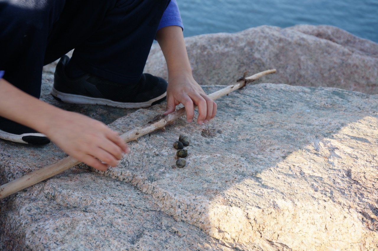 A short distance away, Ethan collected sea snails and made a game from them… If the snails started trying to move, we had to flip them over and poke them so they’d go back in their shell.
