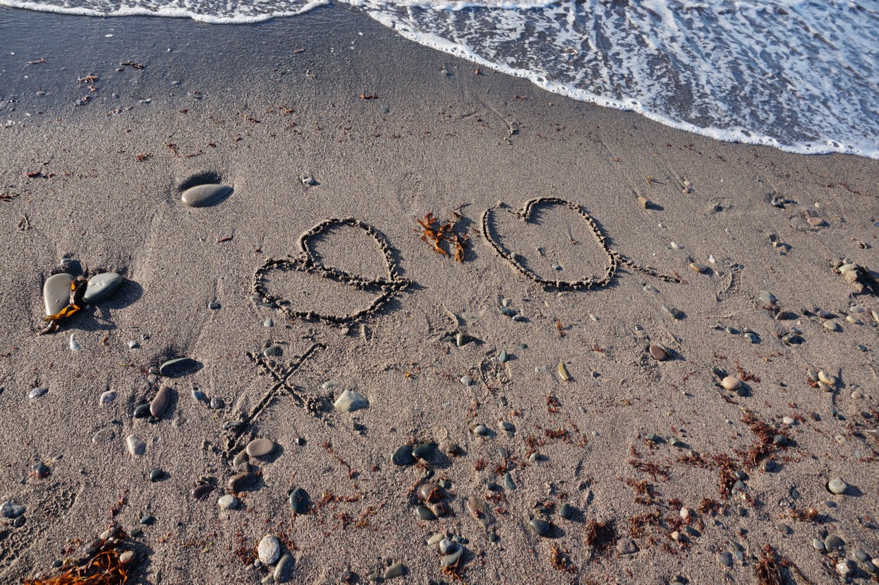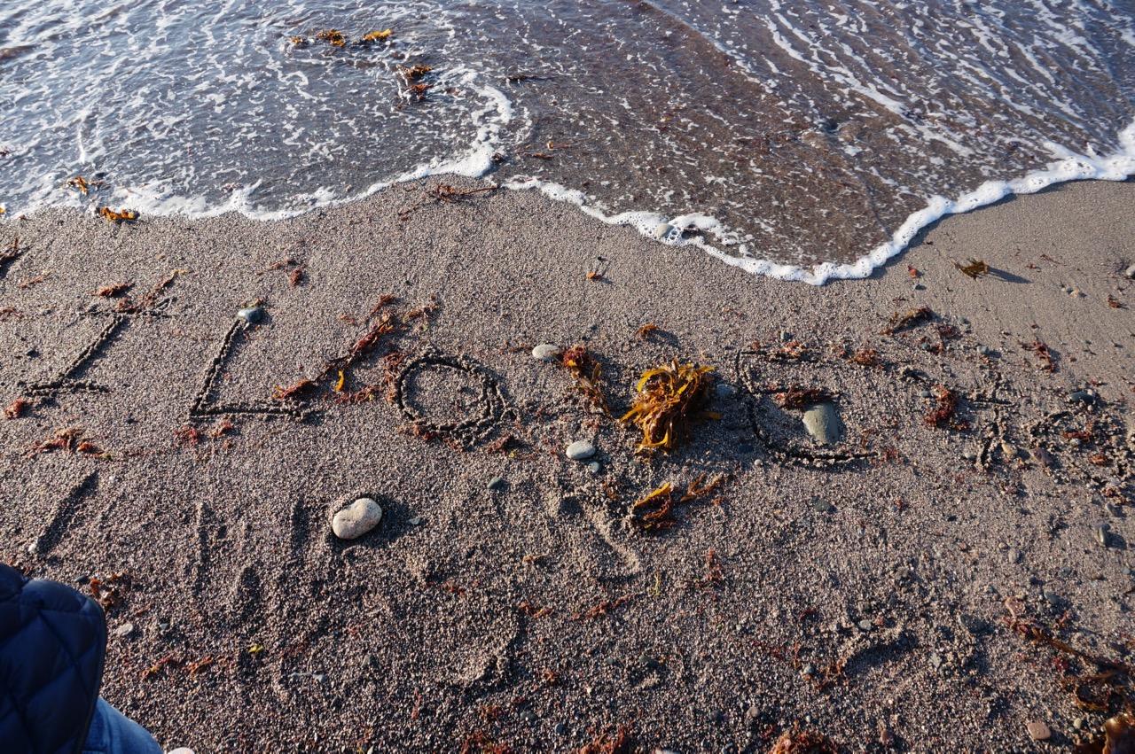 A little further and we were back down at sea level, visiting a local beach. Ethan took the opportunity to write something into the sand for Dong Eun.