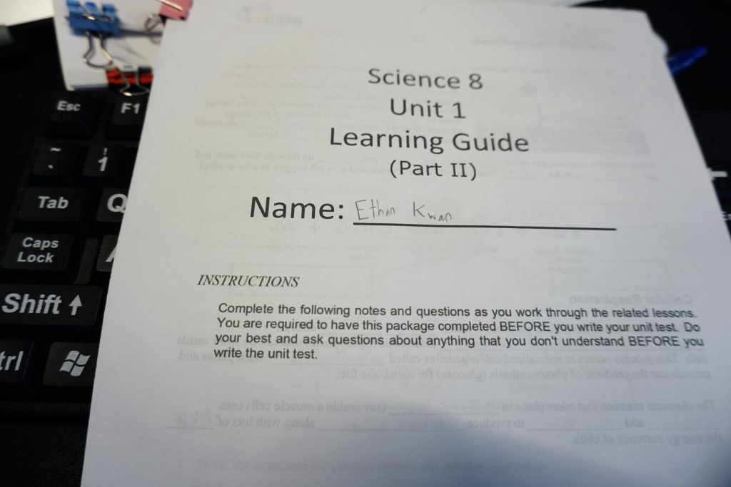 Science 8 has taken more time to get through because it is quite detailed in terms of the topics. Once Ethan completes the Learning Guide, he can then move onto the actual course work. The course work will follow the Learning Guide that Ethan is making, but will include assignments and quizzes.